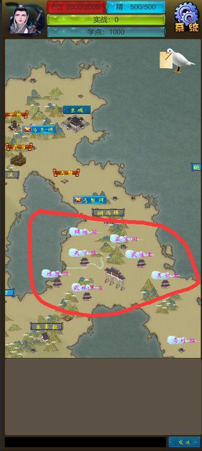圈中按钮为个人属性,背包,排行,锻造等,第一步当然想入什么门派或者做无门派散人,入门派者直接十四个门派中选一个拜师,就能获得一阶武学和心法,无门派者去京城找新人指导员