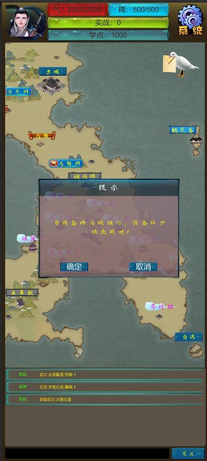 台湾岛时挂机场所,可以贯穿全局游戏的获得实战和点数,如果时懒人可以一直挂着等点数够了升级武功,当然,我们肯定不会这么简单的玩耍,关卡战斗必须要有