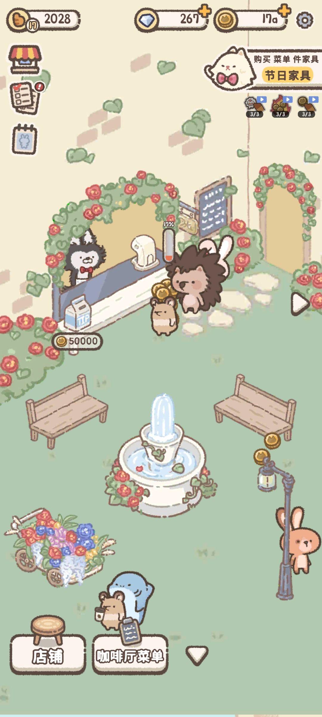 升到一定等级就能解锁花园,花园里有咖啡厅窗口,也就可以开发制作各种各样的饮料啦!游戏性增加一倍好耶!花园里的装饰也很漂亮~值得一肝!