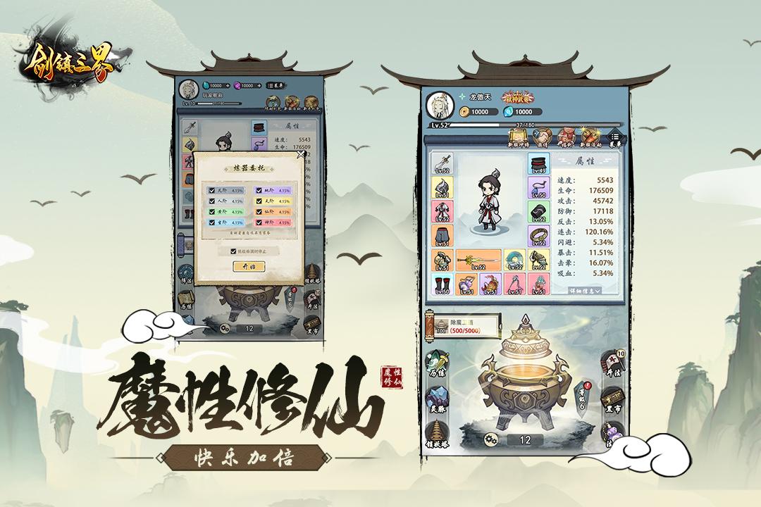 剑镇三界是一款放置修仙类游戏,玩家通过修炼提升自己的实力并探索神秘的三界。在游戏中,玩家可以选择不同的门派和职业,并且可以培养自己的强大阵容。通过参与各种任务和活动,玩家可以获得丰富的资源和装备,提升自己的战斗力。
