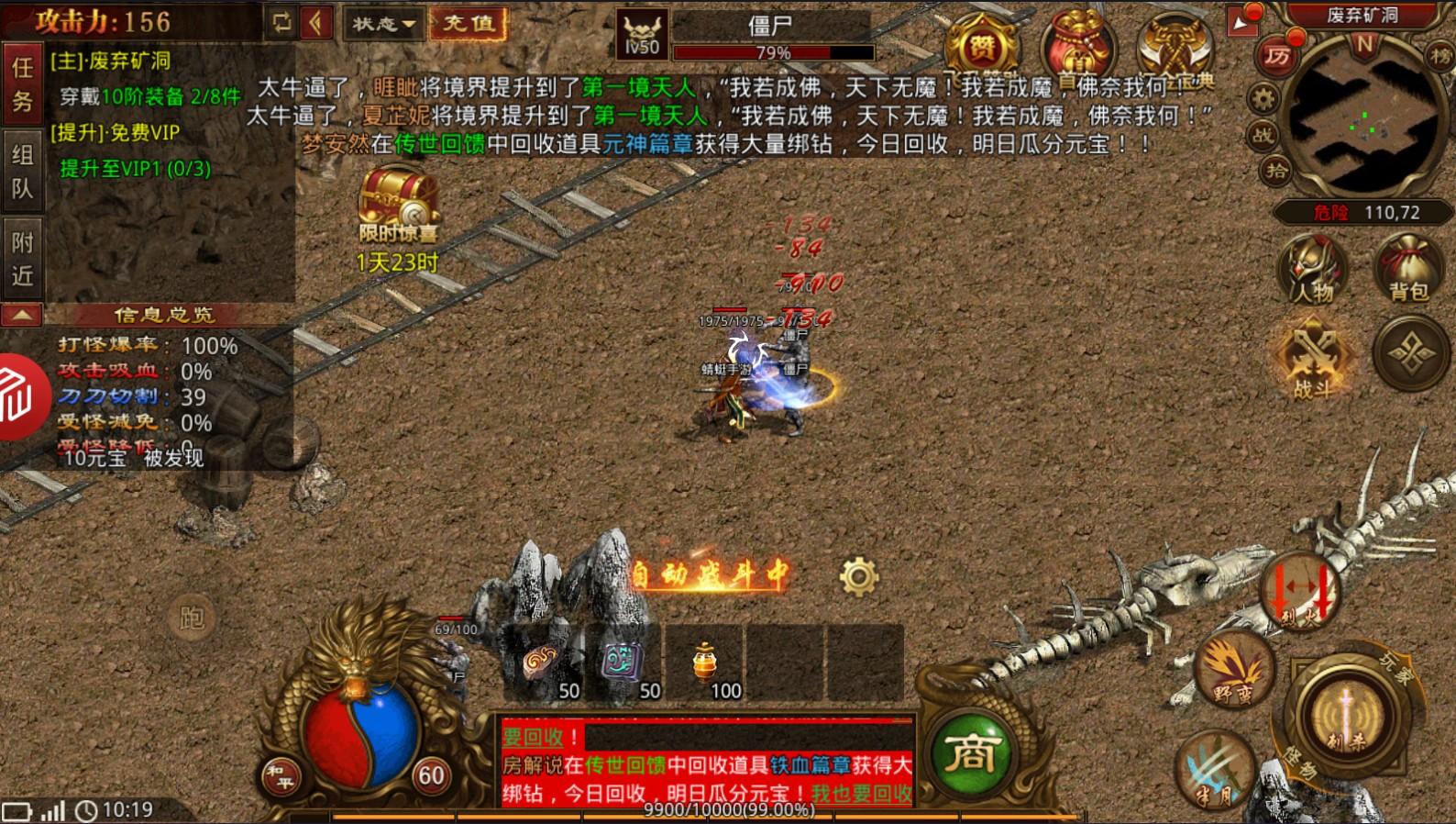 智能挂机战斗模式,解放双手,上线就能够获得大量的收益;