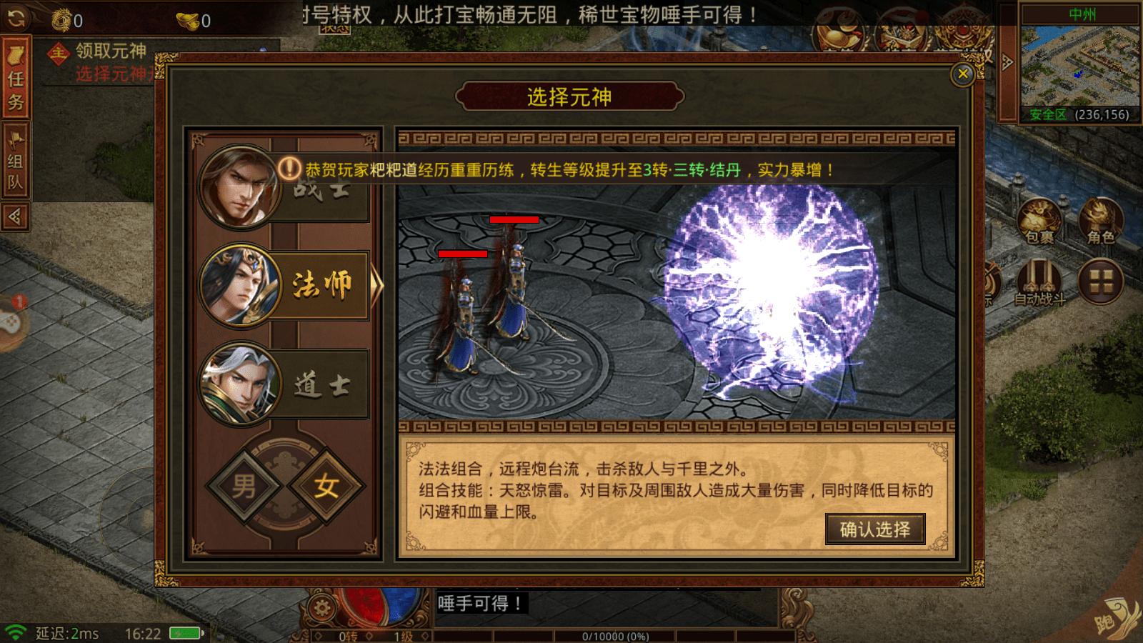 法法组合:双法师职业搭配攻击输出非常高,但缺点是两个法师很脆,生命力弱。级别方面要求不是很高,装备有条件上双魔幻,如果条件有限就用双法师。这套组合练级、PK、打宝都非常适合,不过要有很高的操作手法。