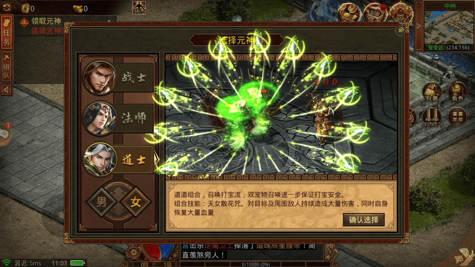 道道组合:道士主体搭配道士元神!这套搭配相对于法法来说,爆发低了不少,虽说合击技能可以补一些瞬时爆发,但和法法组合的爆发还是有差距的!但是道道组合中,道士本体可以召唤神兽或者骷髅,虽说可能没有道战组合那么“人多势众”,但是一个骷髅在前方抗伤害,加上两个道士在后面输出!持续伤害还是很高的!
