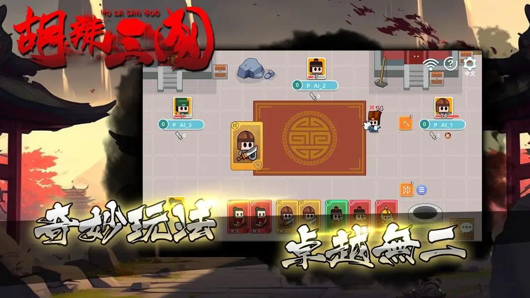 胡辣三国是一款策略对抗游戏,游戏中有多种不同的角色可以形成克制阵营,玩家需要有目的性的出牌来制胜,游戏以三国为背景,各个武将角色都是大家熟悉的,而且q萌的画风可以让大家玩得更加的轻松,超烧脑的玩法一定能够让您感受到乐趣。