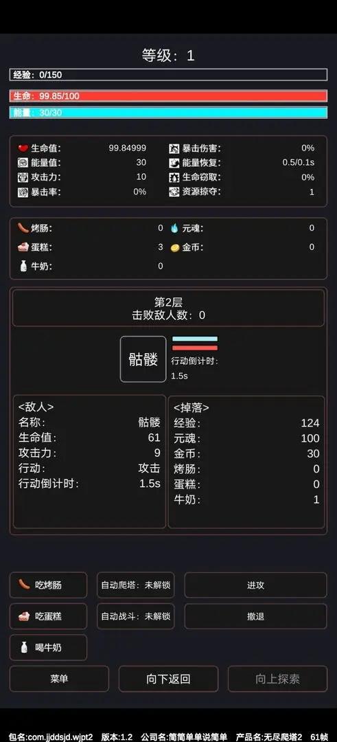 无尽爬塔2是一款文字战斗游戏,延续了前作中精彩的玩法,而且内容更加的丰富,玩家将在这里进行一场爬塔冒险,您需要攻击各种不同的敌人,解锁新的装备和提升自己的实力,这样才能够击败大boss迎来最终的胜利。