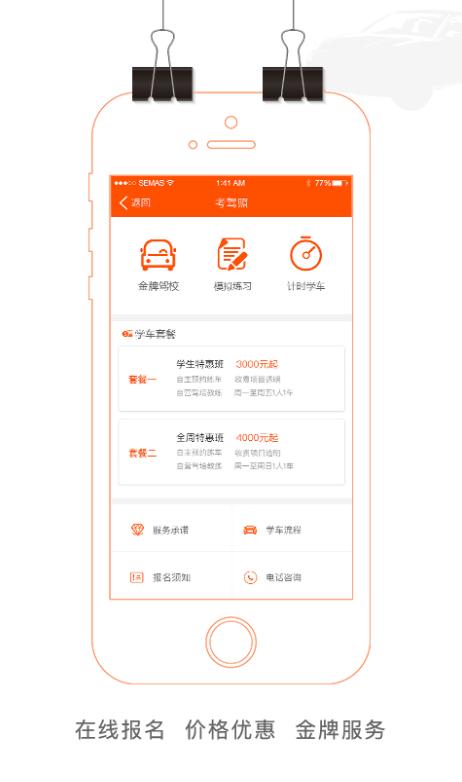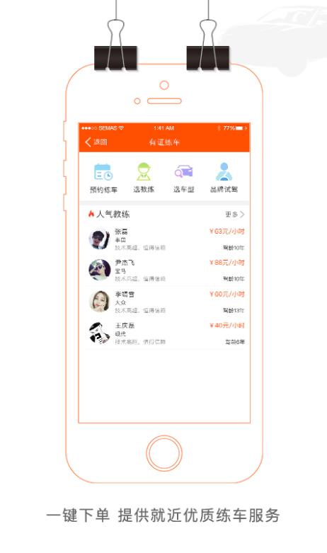 3.免费报名,快速选择教练用手指报名,无需排队!