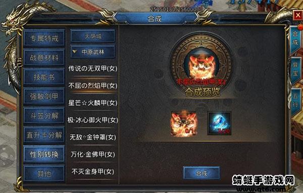 3、可将装备进行性别转换,将需要转换的装备+进化之石放入合成即可