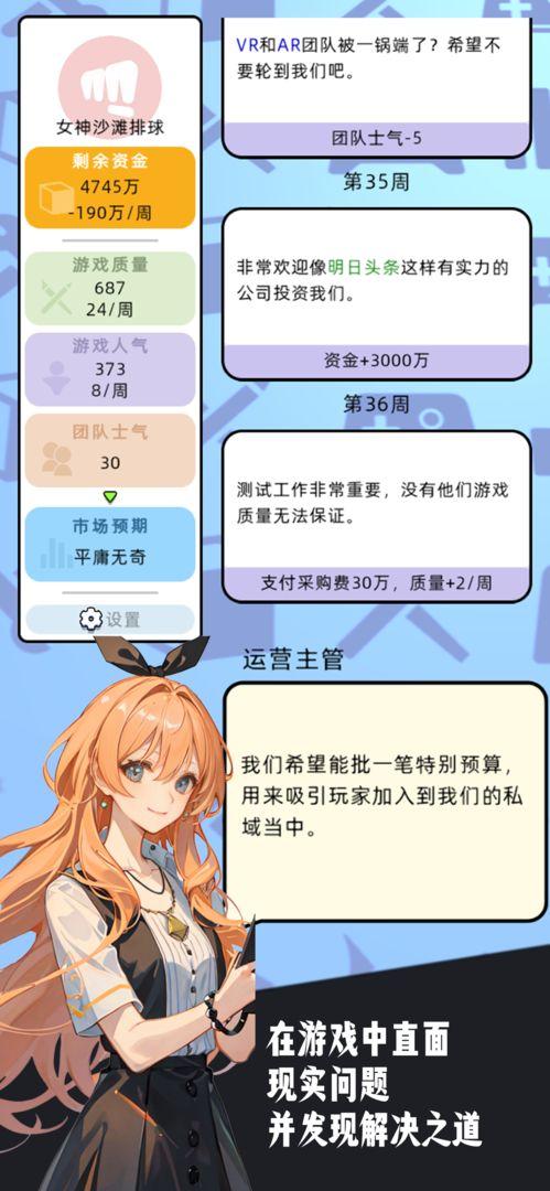 在这款游戏中,你将面对一个个古怪而又现实的问题,其中一些可能微不足道,还有一些则可能是致命的。每一个决策都将在潜移默化中影响你的游戏是否能成为引领潮流的热门大作。