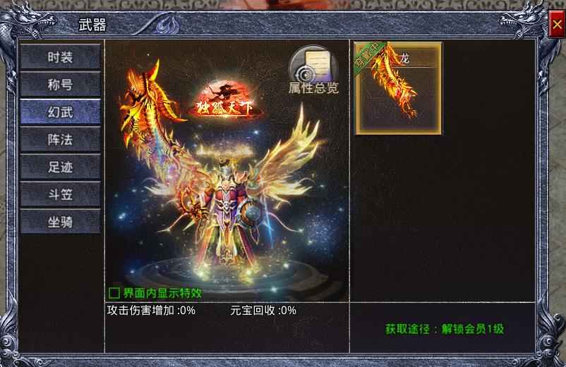 2.每个已经获得的时装、称号、幻武、斗笠、坐骑可自由更换穿戴
