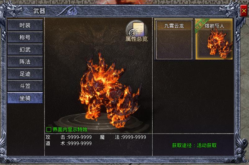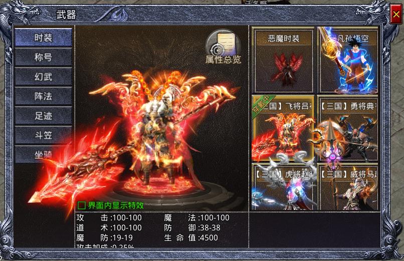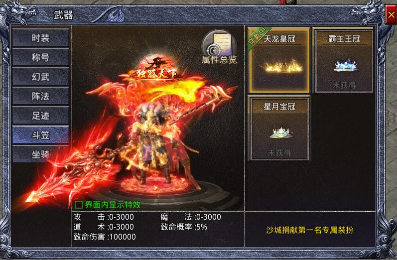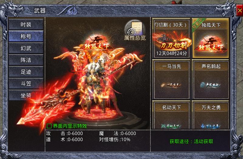 1.时装、称号、幻武、斗笠、坐骑可以改变角色外观并提供额外属性加成