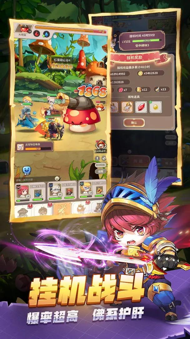 担心游戏太肝跟不上进度?NONONO!在彩虹岛上,装备技能挂机拿,打怪升级两不误!妈妈再也不用担心我熬夜爆肝啦!