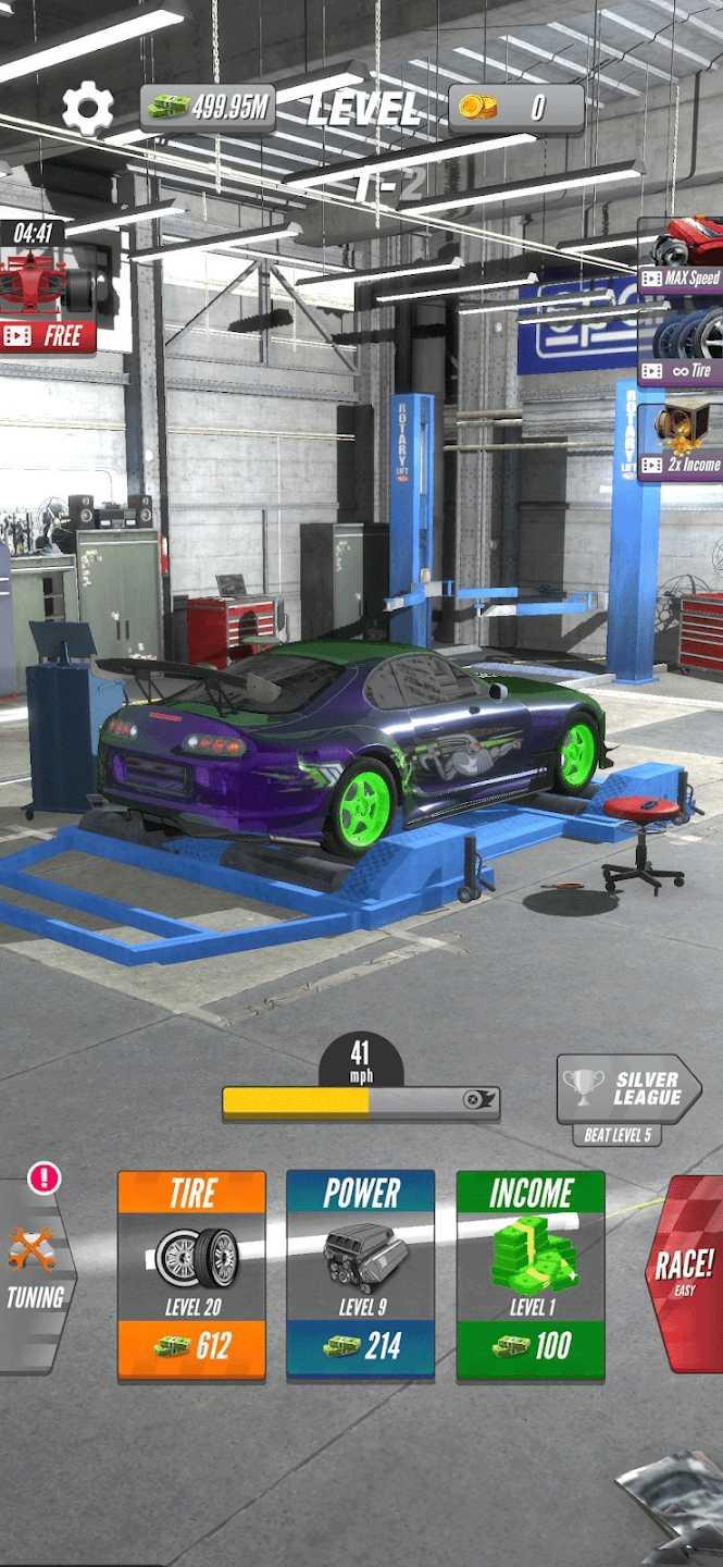 马力机竞速是一款汽车竞速类游戏,玩家需要在车库里对汽车进行调整和修改,在比赛中击败挑战者并扩大收藏。游戏的核心玩法是在测功机上测试汽车性能,通过不断比赛和提高排名,玩家可以解锁更多的汽车,并且参加更高级别的比赛。