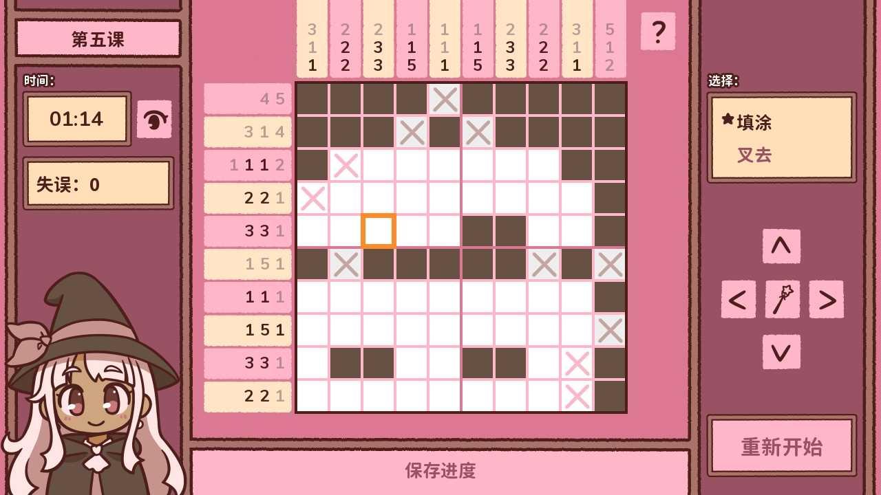 符咒学是一款数织玩法的游戏,游戏中您需要根据数字来正确的选择格子,知道达成所有数字的目标,玩法非常的益智,您可以有很长的时间来思考,游戏的画风也是非常好看的,跟随着剧情故事来选择格子涂色吧,最后能形成精美的图画。