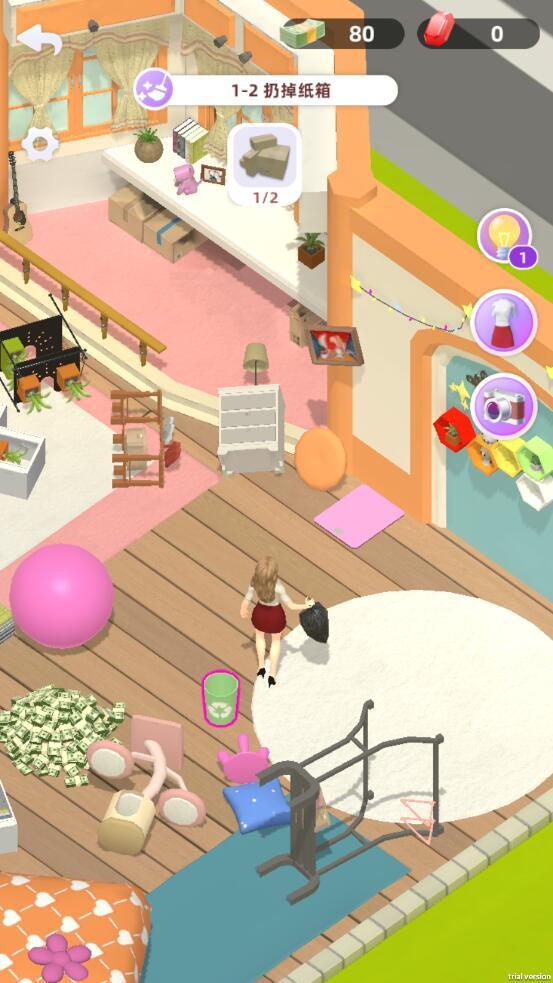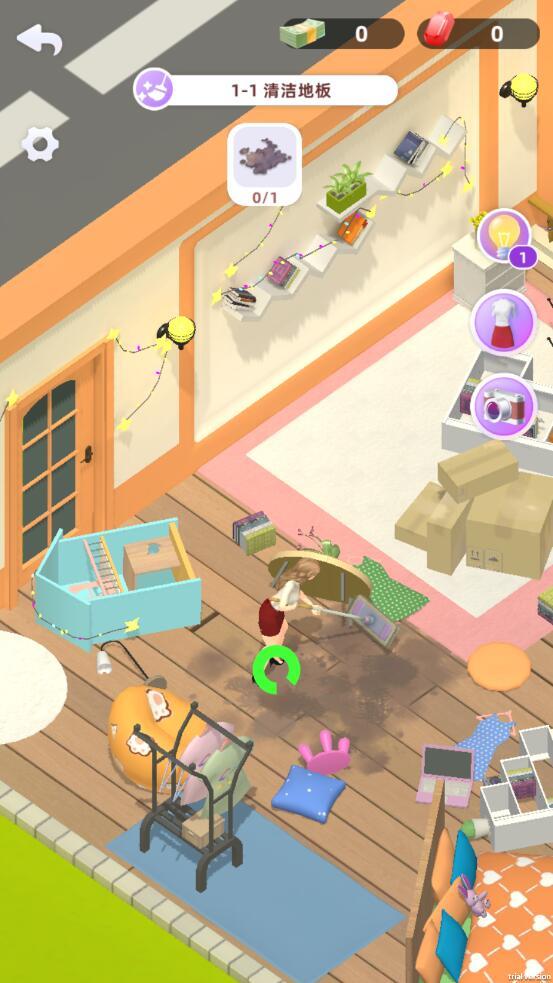 整理大作战是一款非常治愈解压的休闲游戏,玩家需要在这里整理房间,把杂物都扔掉,有用的东西都物归原位,让破败的房间焕然一新,玩法非常的简单轻松,看着凌乱的房间被收拾整齐好会很有成就感。