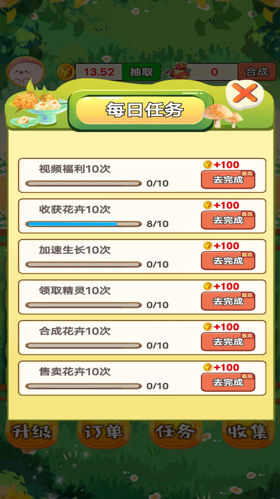 该游戏以放置经营为主要玩法,玩家需要种植花卉并完成外卖订单获取奖励。该玩法简单易上手,但需要一定的策略和规划。
