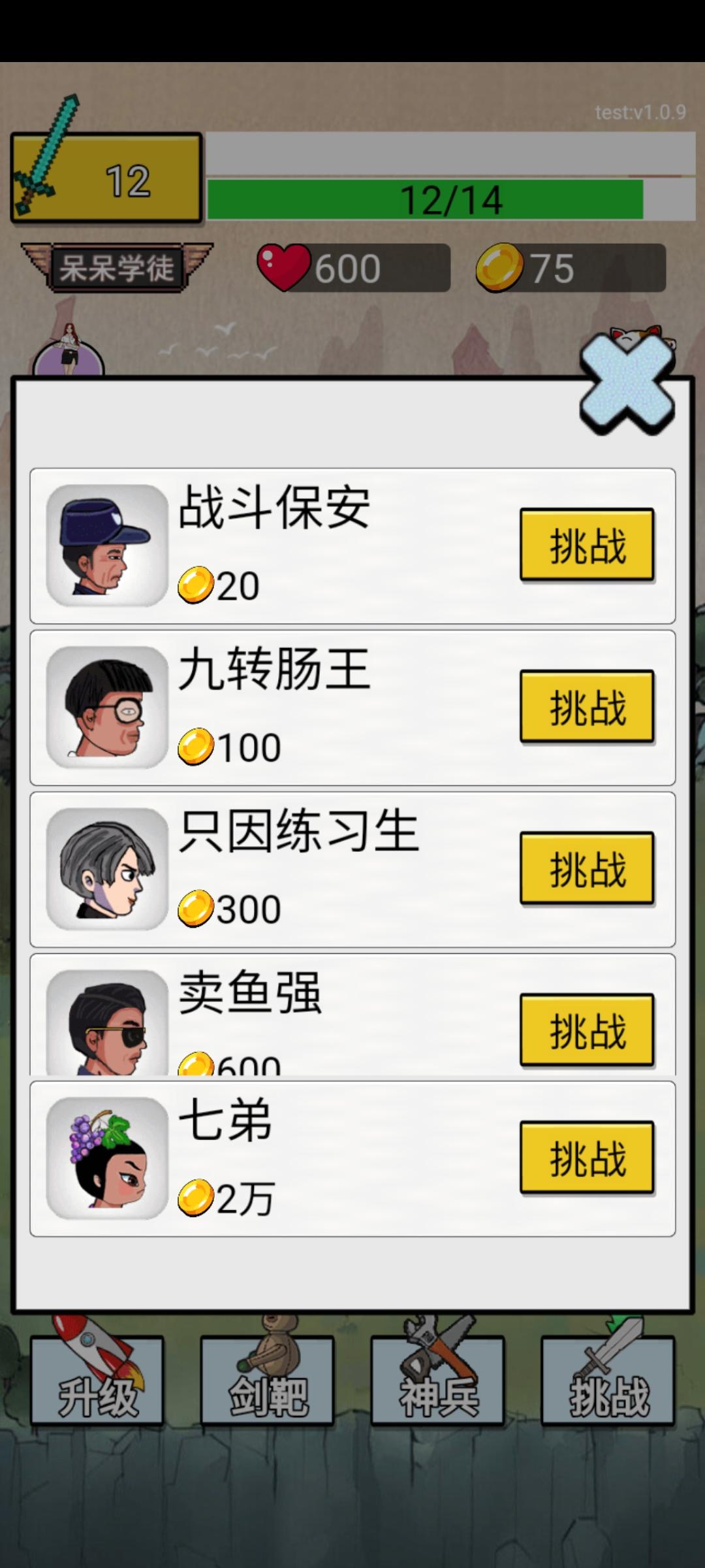 游戏中可挑战各种NPC,如:保安,九转肠王,强哥,水果葫芦娃等等比较有梗的角色。