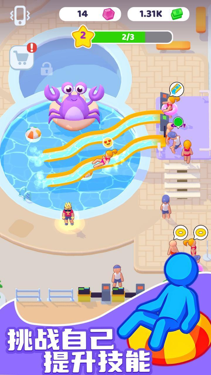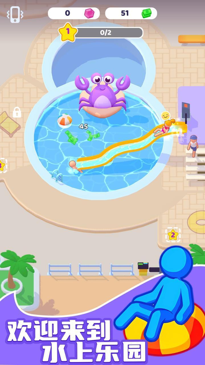 自由建设:玩家可以根据自己的想象力和创造力来设计并建设自己的水上乐园。从选择乐园的地点和主题,到建造滑水道、泳池、冲浪池等各种设施,玩家可以完全自由打造独一无二的乐园。