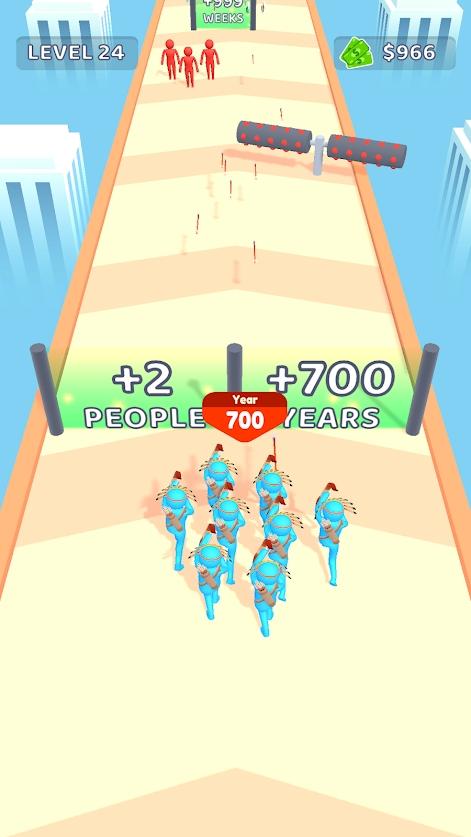 群体进化是一款令人兴奋的3D跑酷动作冒险手机游戏。在游戏中,玩家需要引导一群小人不断进化,使他们达到更高级别的能力,以便在终点前击败敌人并赢得胜利,发展和提升你的群体。通过收集道具、完成任务和战胜对手,你可以为你的小人增加新的技能和装备。