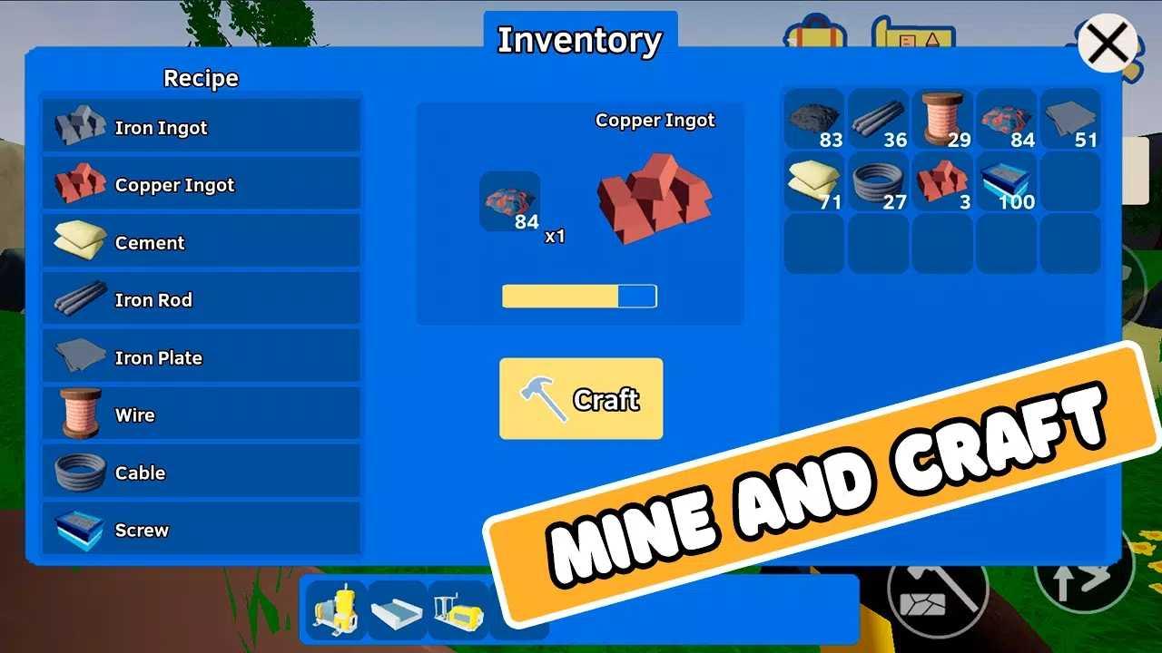 工厂建造模拟器是一款引人入胜的游戏,让玩家扮演工厂建设者,在游戏中,您将面对多种资源的挖掘与利用,包括煤炭、铁矿石、铜矿石、石头等。通过收集这些资源,您可以生产新型材料,并用它们来建造更多的设施。