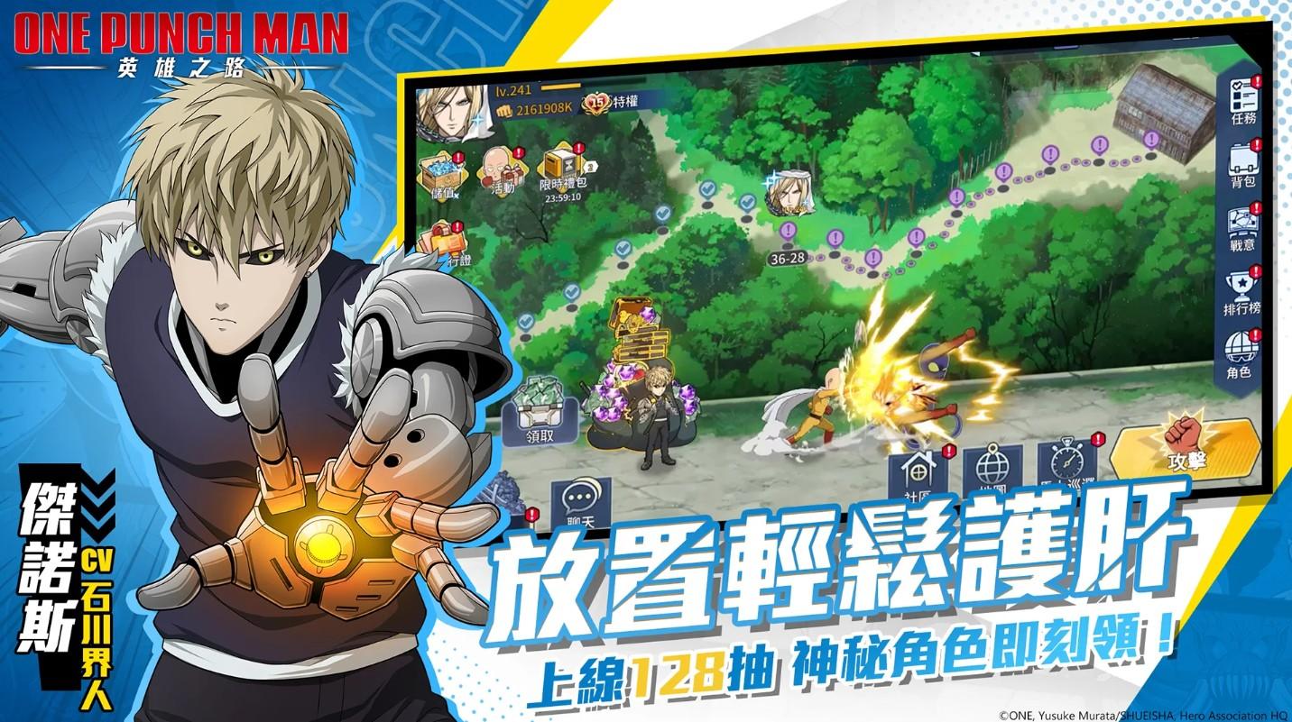 一拳超人英雄之路是一款全新推出的放置类RPG游戏,游戏由超人气动画正版授权,原汁原味还原了动画的经典剧情和角色形象,在这里你将与怪人们战斗,打败强敌,感受华丽震撼的必杀技演出。