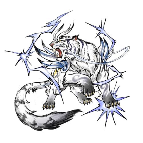 白虎——白虎者,仁兽也。虎而白色,缟身如雪,无杂毛,啸则风兴。