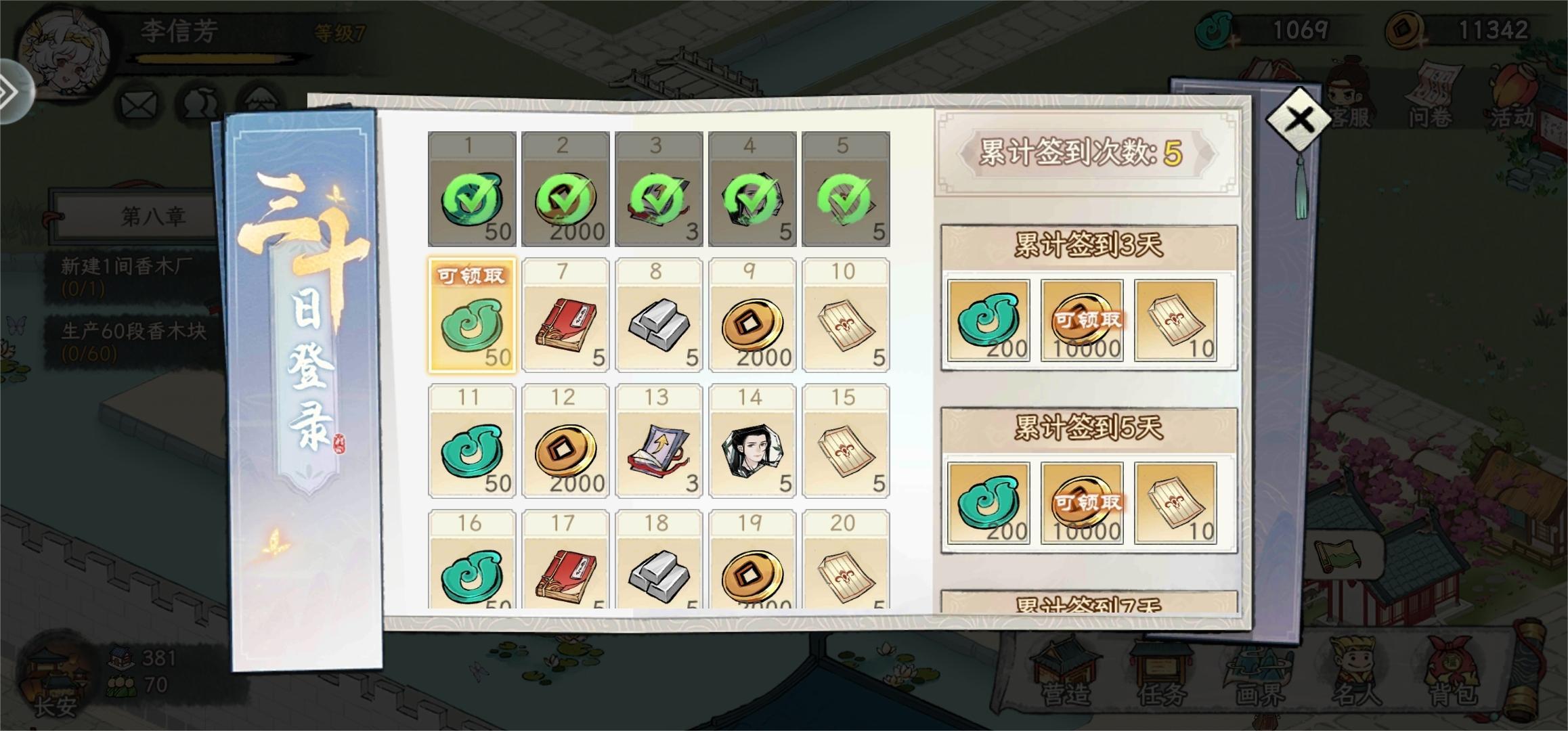 背包:看看【道具】还剩多少,有哪些名人【碎片】,还可以强化一下【珍宝】