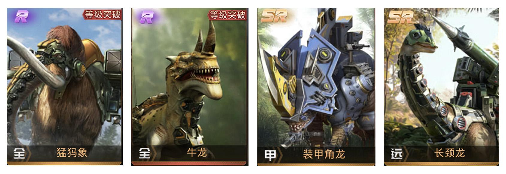 巨兽分R,SR,SSR三个等级,主要细分为野战型,战争型,发展型,采集型,不同类型的巨兽对有不同的专项属性加成