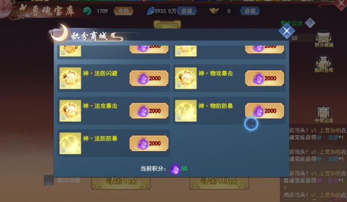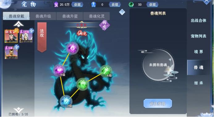 4.宠物兽魂有物防,法防,生命,物攻,法功,法防属性,金色兽魂可以获得更高阶的属性,仙友们可以在兽魂宝库获得金色兽魂!!