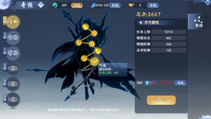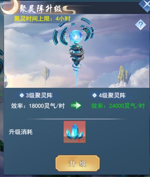 3. 聚灵阵会随着时间来获得灵气值,灵气值可以用于打通经脉,从中获得属性。