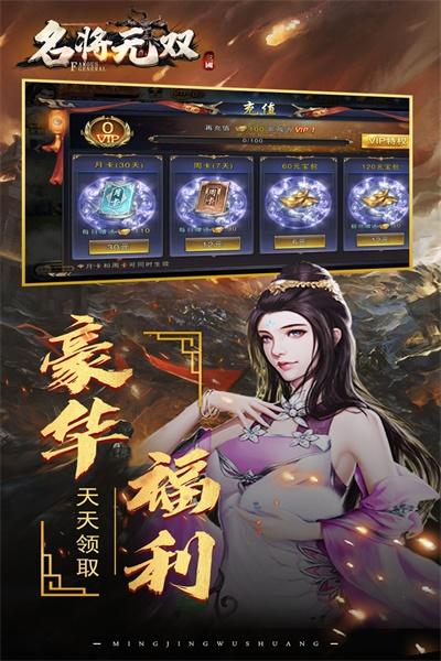 名将无双是一款带有修仙元素的三国卡牌策略手游。将三国世界做了全新的调整,加入了不少其他世界的英雄武将,大家可以对选中的英雄武将进行修炼,升级技能、提升等级,也可以为英雄武将搭配神兵利器,在你的排兵布阵下有更强的威力,争取争霸三界。