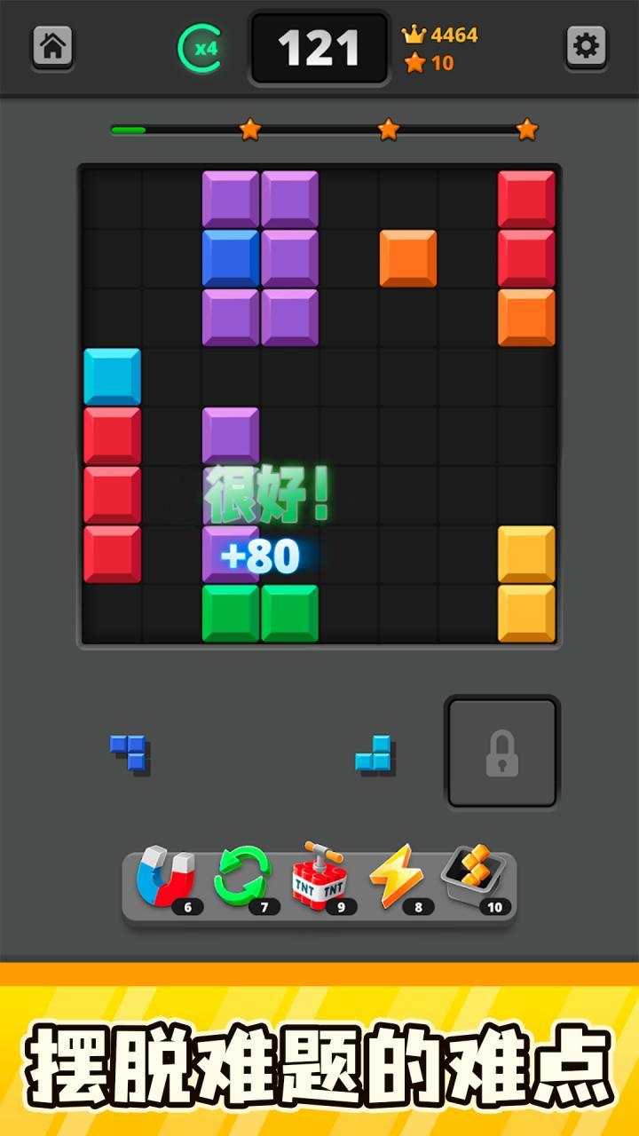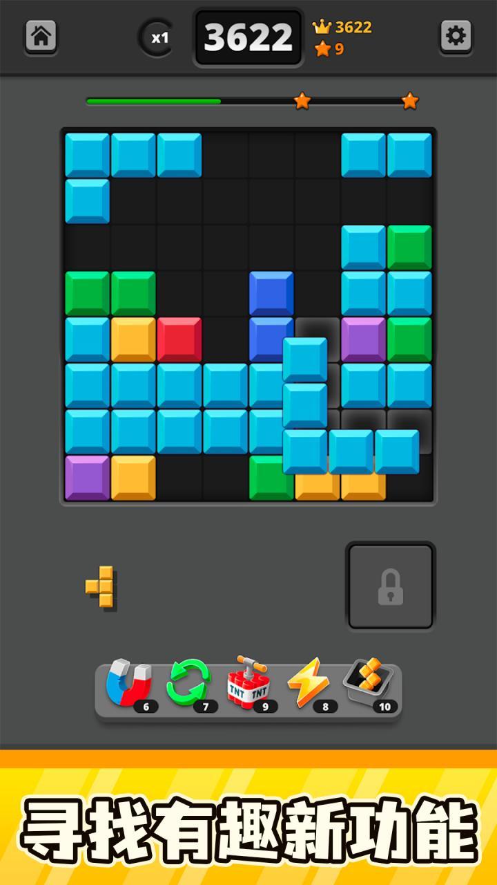 经典游戏的延续: 游戏保留了经典的积木拼图游戏元素,您仍然需要通过合理摆放方块以填满行或列,并获得分数。这种经典的游戏机制让您感到宾至如归,同时又有了新鲜的转折和挑战。