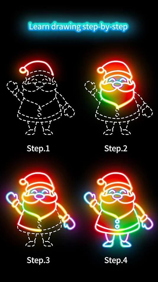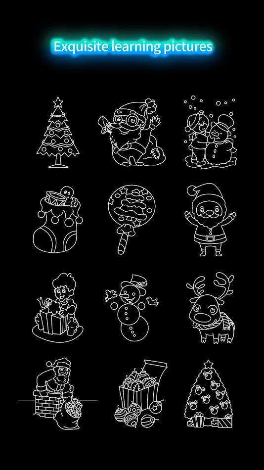 逐步绘制教学:游戏会逐步教导您如何绘制圣诞老人、麋鹿、圣诞树、礼物等图像。无论您是否有绘画经验,您都可以轻松跟随游戏的指导完成美丽的作品。