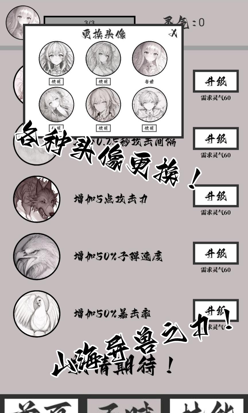 山海了个经是一款单机休闲闯关游戏,玩法简单,玩家需要使用技能来对抗山海经中的异兽,每个关卡都是不一样的敌人,主要需要利用智力来进行战斗,手绘的画风看着非常的舒适,闯关的玩法可以快速结束对局,玩起来很轻松。