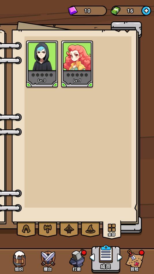除此之外,游戏还提供了丰富的放置RPG玩法,提供了多个组织成员用于冒险.