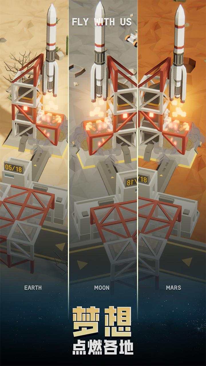 游戏中的车辆会不断运来材料,随后由玩家的航天公司制造成火箭并自动完成发射,赚取金币。