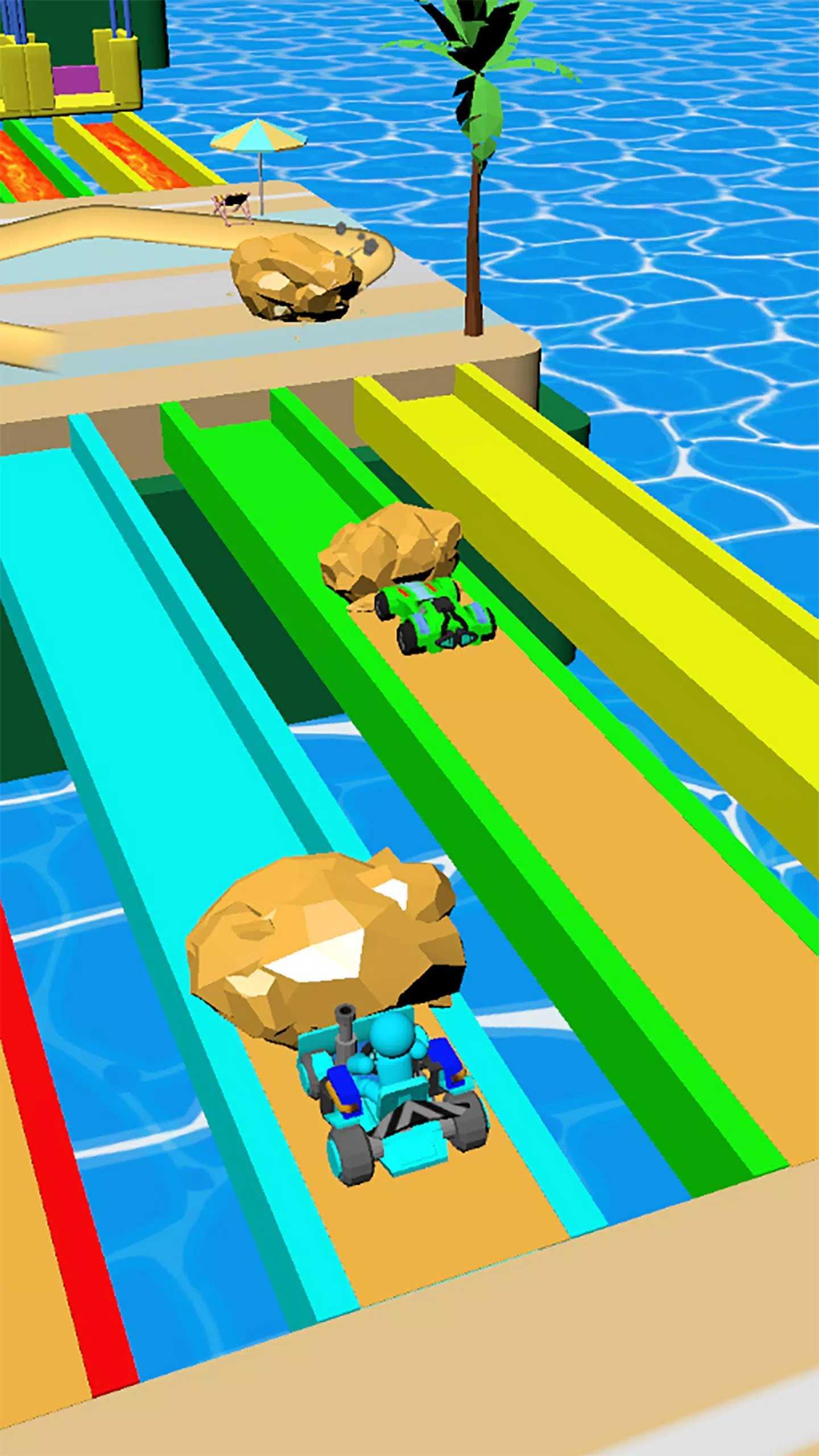 游戏中玩家需要在赛车中进行激动人心的冒险。玩家需要使用推土机收集砾石,铺平道路,使沙球比对手更大。同时还需要征服具有挑战性的赛道,越过各种障碍,炫耀自己的速度技能。