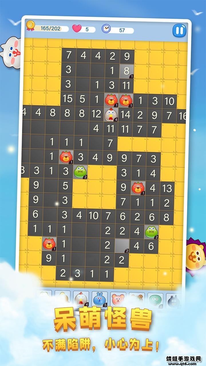 塔塔怪兽是一款将扫雷和冒险打怪玩法结合在一起的游戏,通过扫雷的方法来判断周围的怪物,发现怪物之后消灭掉他们,并提升自己的等级,强化实力,消灭等级更高的玩法,玩法休闲,同时也很烧脑,让玩家轻松度过游戏时光;