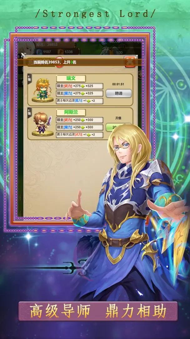最强领主是一款采用魔幻风格的模拟经营冒险游戏,玩家在这个异世界大陆中需要招募许多的勇士来保卫家园,您需要培养这些勇士进行冒险,与敌人对战争夺领土,扩大自己的领地,成为最强的领主,游戏的丰富度很高,很多的玩法内容等玩家来体验。