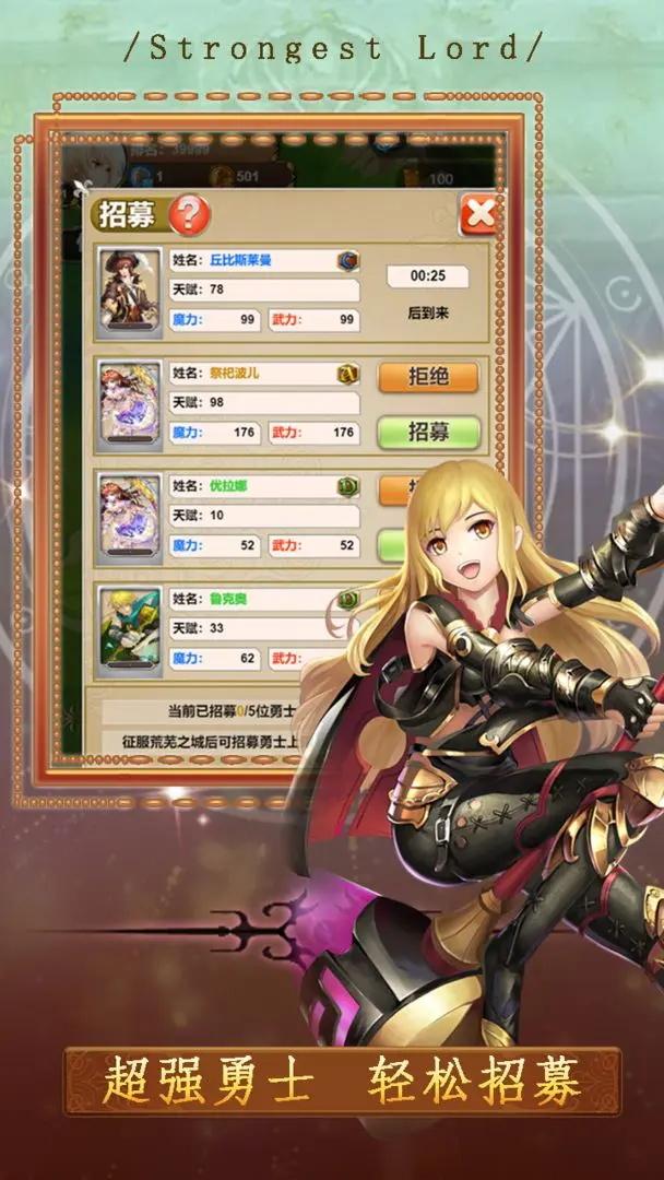 在你的领地之中存在着许多不明名的勇士强者,你将行使领主的权利,将其招募而来,增强领地实力。
