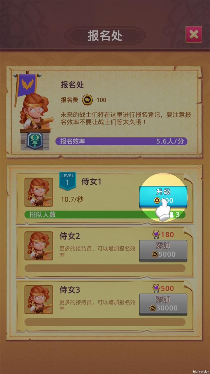 例如训练场、宿舍、食堂和小酒馆,丰富营地生活。面对危险的挑战:获得高级战士后,解锁怪物前线。派造您的战士击败怪物并获得丰享的奖励!