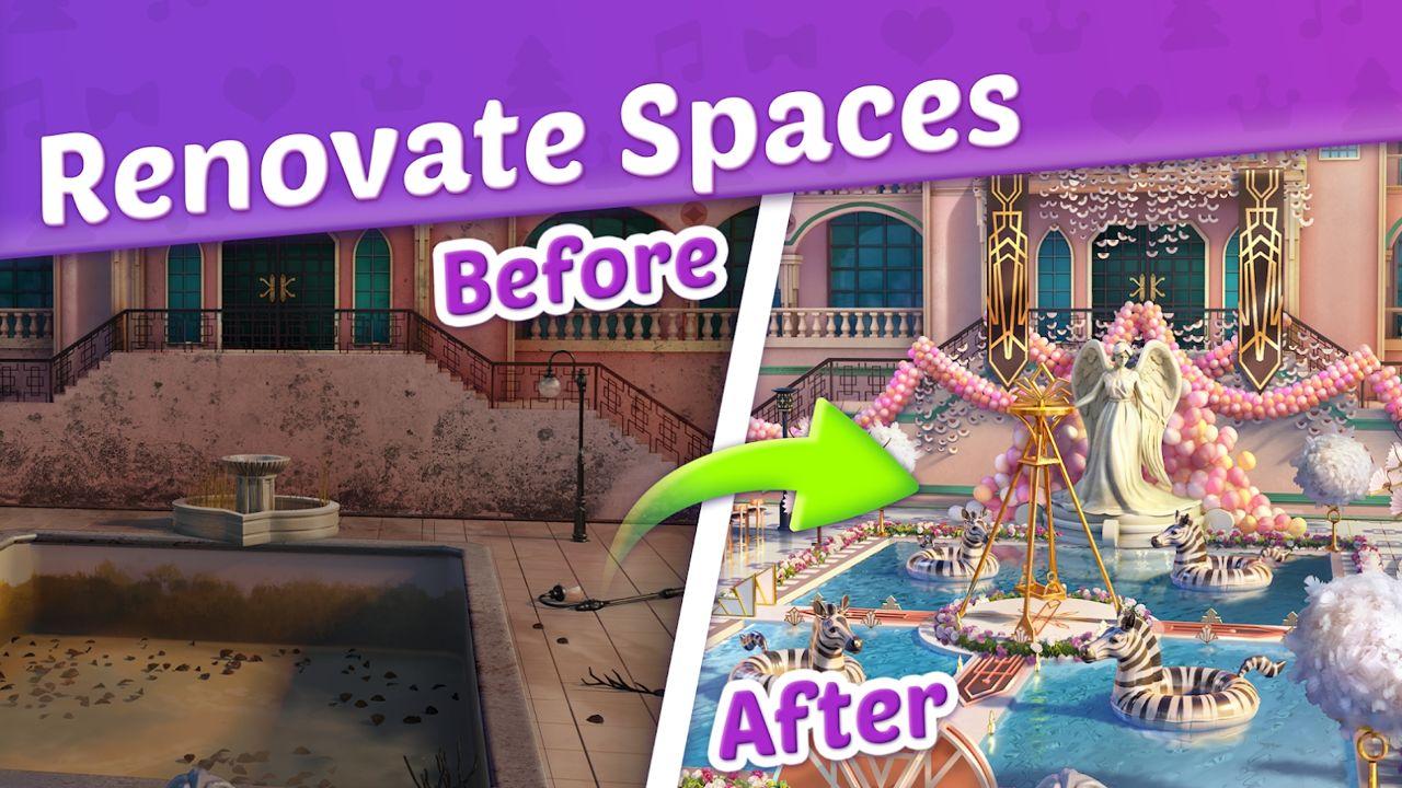 游戏的核心玩法是三消爆炸益智游戏,玩家需要通过解决谜题来获得金钱和道具,以设计和改造客户的活动场景。