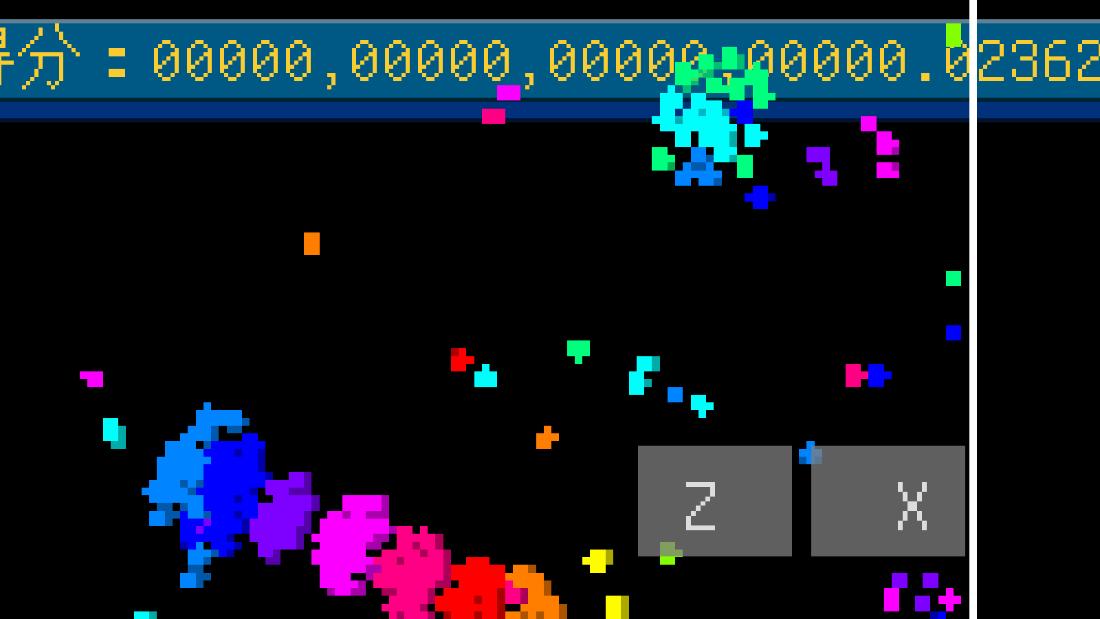 在游戏中,玩家需要操控一个红色像素小球,在屏幕上移动,并通过吃掉其他颜色的像素粒子来增长自己的身体。Z和X键可以用来改变自己的颜色,这会影响到能够吃掉哪些颜色的像素粒子。游戏中还有积分系统,当玩家的身体长度超过一定阈值时,积分系统可能会故障,这是属于正常现象。