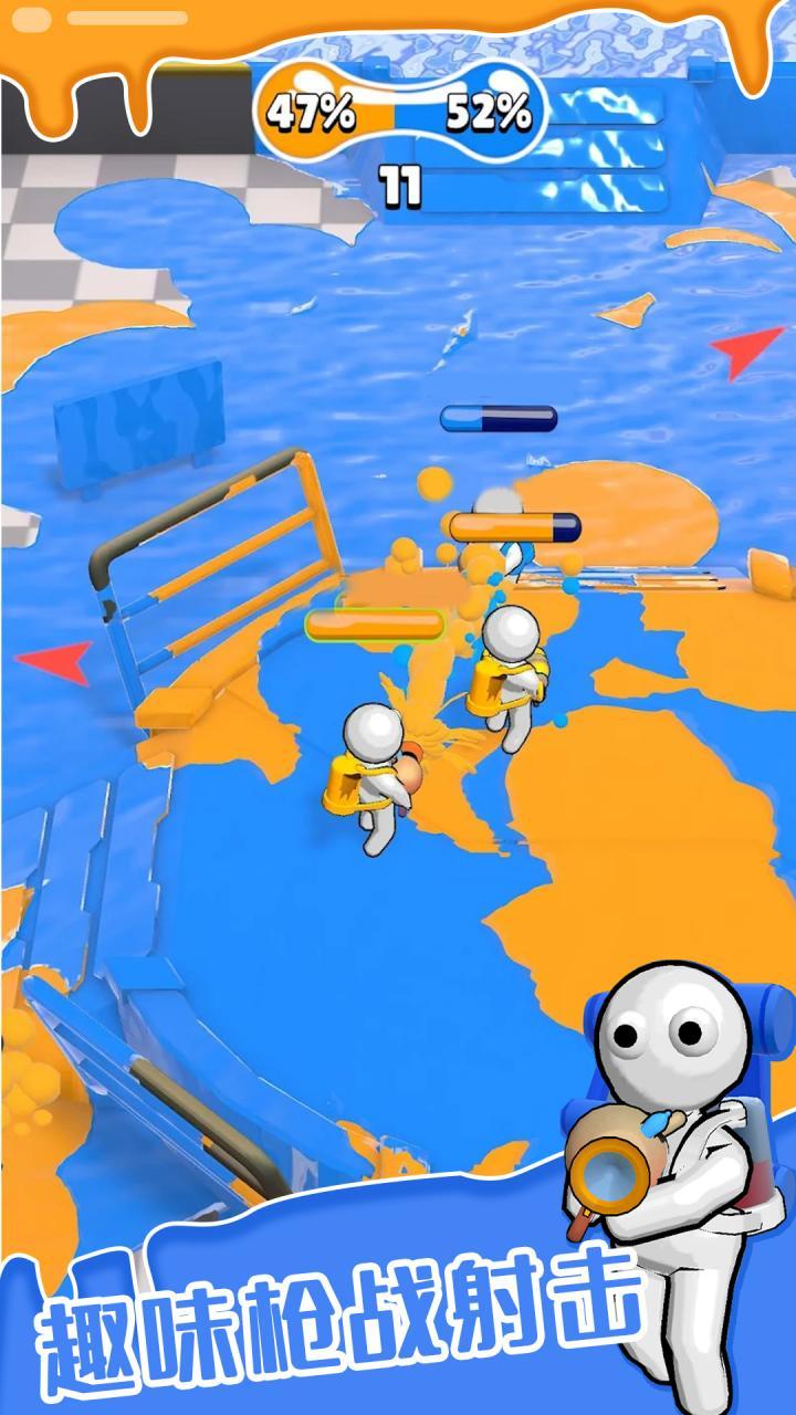 游戏的界面设计简洁明了,容易上手。玩家可以轻松地使用手柄或键盘控制角色移动,并使用武器进行攻击和涂色。