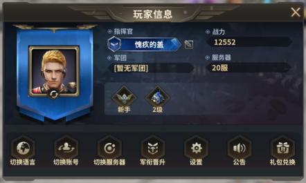 点击头像,将打开详细的玩家信息窗口,在此可以对游戏进行基础设置、切换登录账号、更换区服等操作。