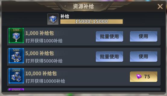 该区域主要显示指挥官当前拥有的各项常规和贵重资源的储量,包括晶矿、补给、钻石等,方便指挥官根据当前储量进行合理的规划和分配。