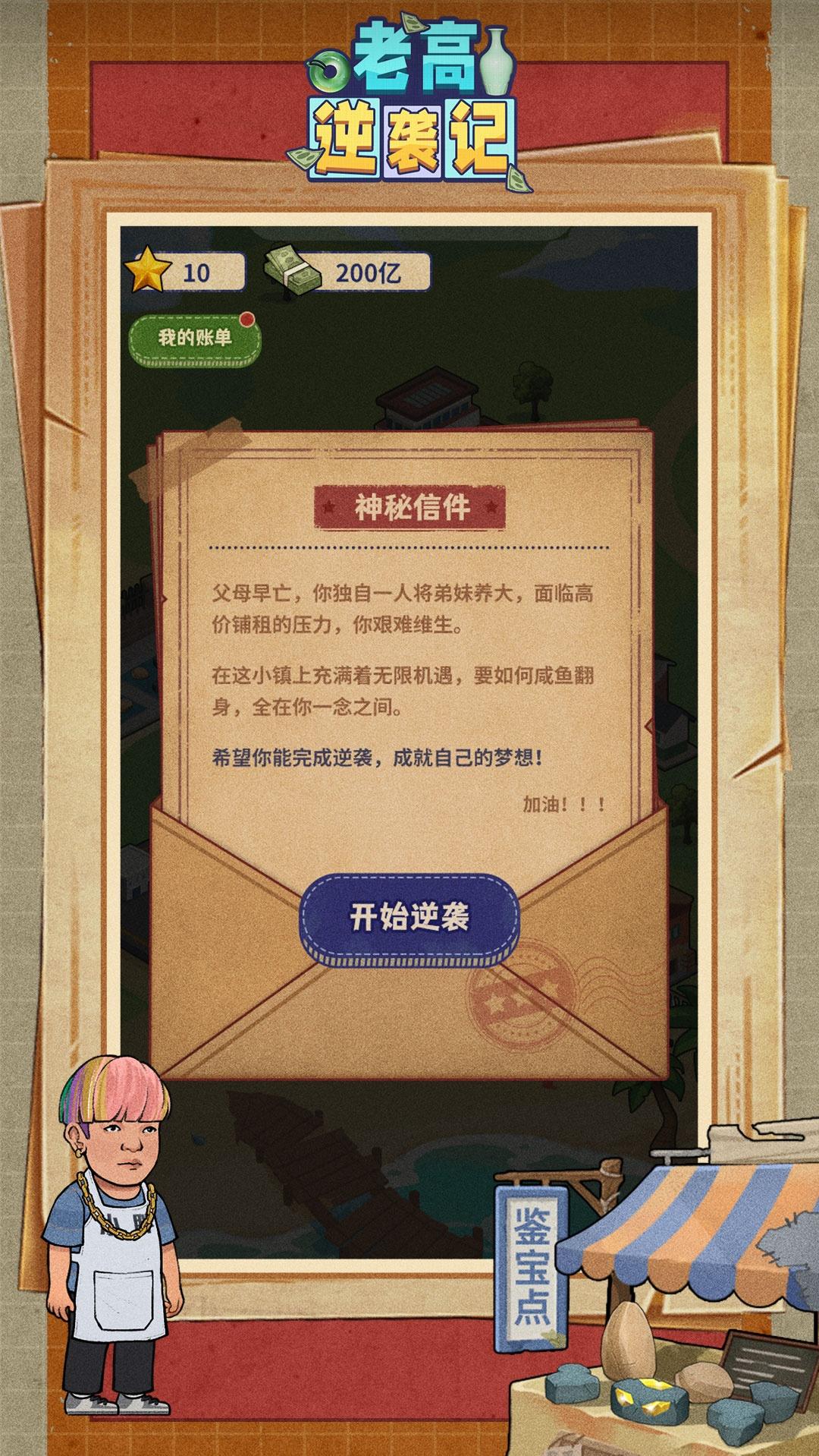 老高逆袭记是一款以模拟经营为特色玩法的游戏,玩家将扮演主人公老高回到九零年代开始逆袭之旅,在这个小镇上,您可以通过各种创业来累计财产,变得越来越富有,游戏的玩法非常多,您可以赶海也能够前往古玩市场淘金。