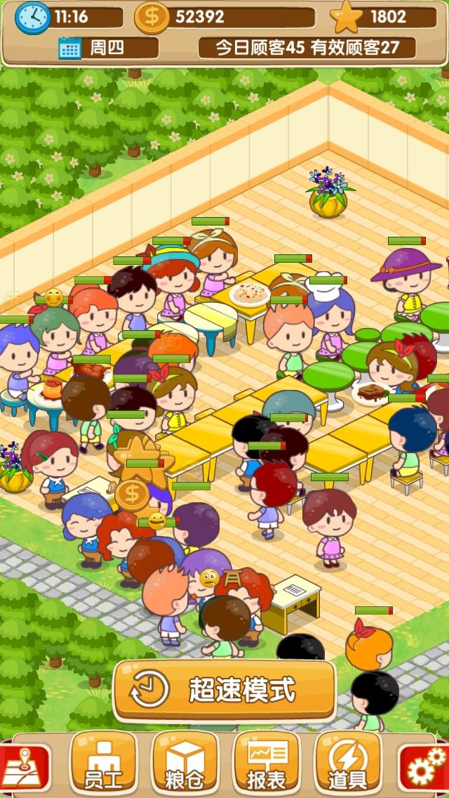 在游戏中,每个顾客消费完毕会产生开心值,开心值高了饭店才能越扩越大。而饭店的收益则取决于顾客的消费金额和交易量等因素。通过合理运营饭店,玩家可以获得丰厚的金币收益。