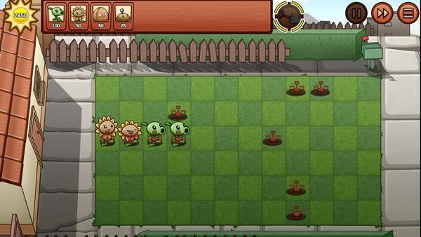 放置植物:玩家需要在自己的草坪上放置各种不同类型的植物,来防御僵尸的入侵。