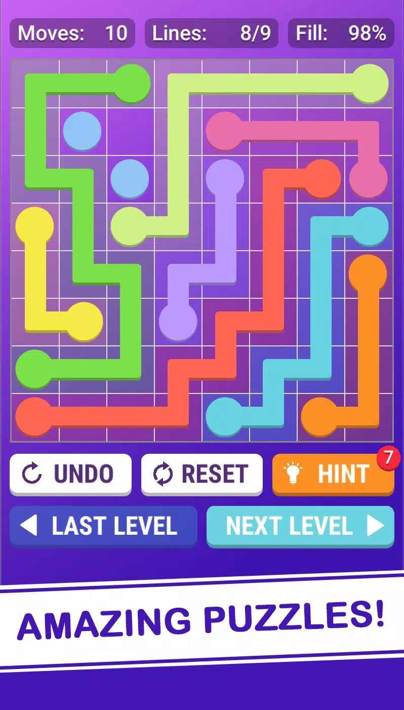 在游戏中,玩家需要连接相同颜色的点,每次成功连接会出现一条线段,直到整个面板充满美丽的色线。