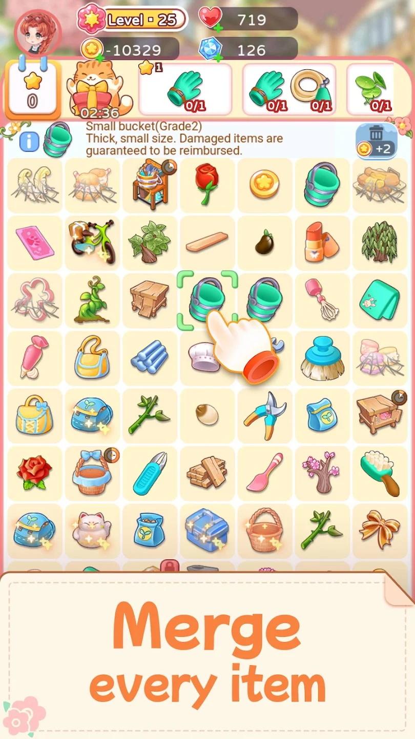 合并绽放是一款画风精美的消除合成游戏,玩法简单,易于上手,玩家需要通过将相同的两个物品放在一起合成新的物品,达到目标后改造房子和花园,玩法非常的轻松解压,还有有趣好玩的剧情吸引您探索下去。